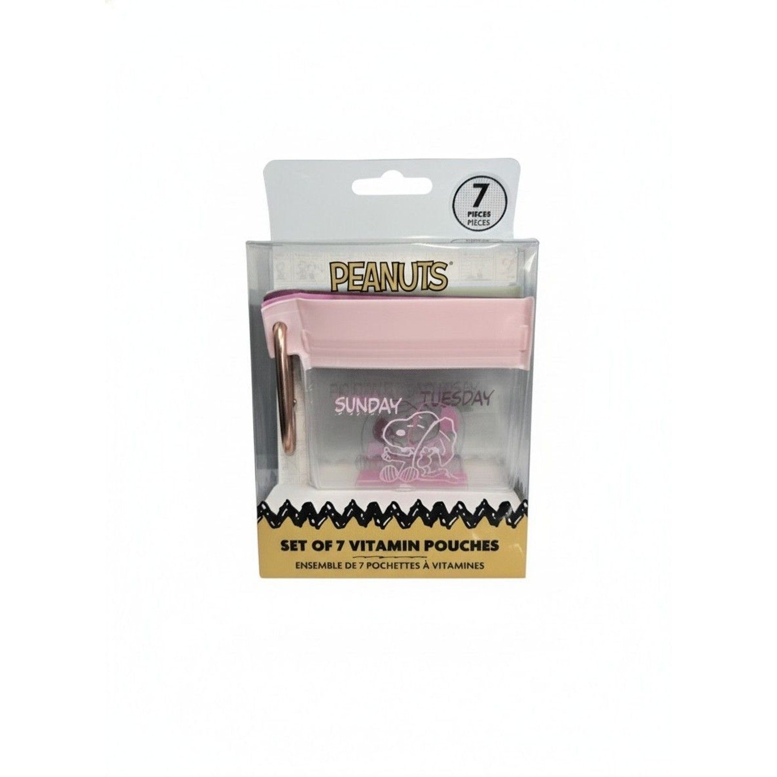 Stay organized and on track with this clever and compact Peanuts pill pouch set. Designed exclusively for Trudy’s Hallmark, this set of seven colorful Snoopy-themed pouches makes daily supplement sorting fun and functional. Whether you're at home or on the go, it's the perfect companion for health-conscious Peanuts fans.